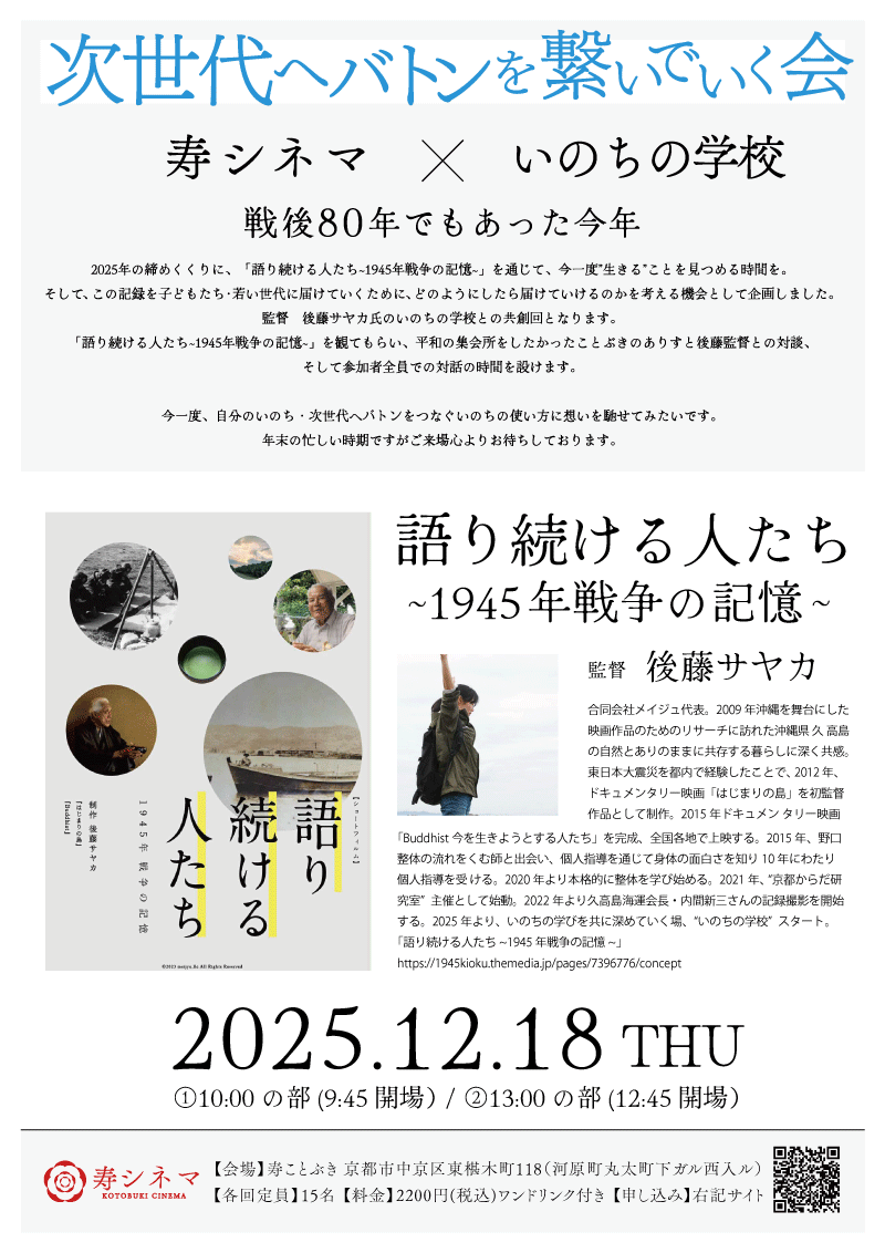 監督後藤サヤカ氏のいのちの学校との共創回となります。